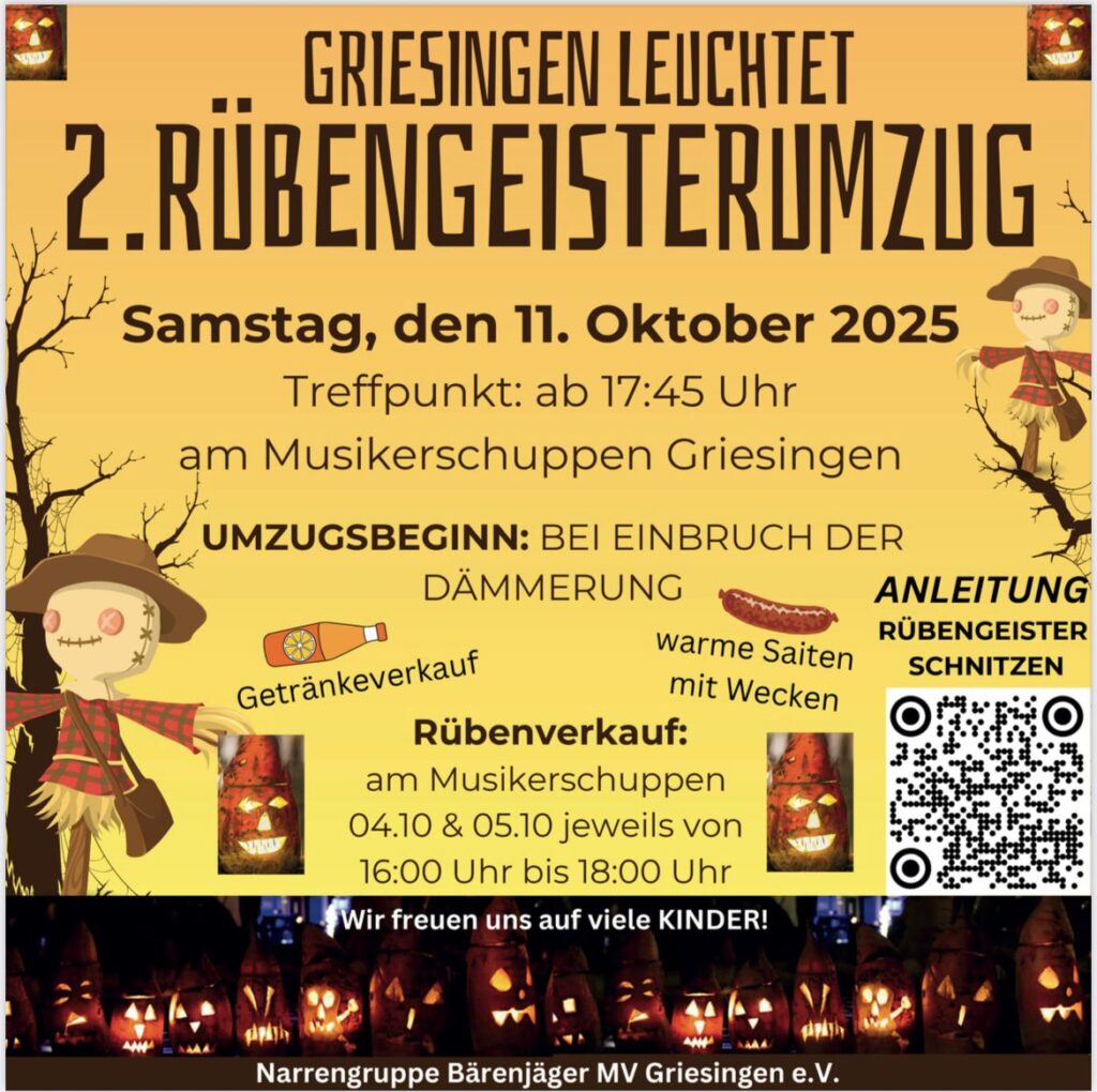 Am 11. Oktober veranstaltet unserer Narrengruppe Bärenjäger den 2. Rübengeisterumzug.
