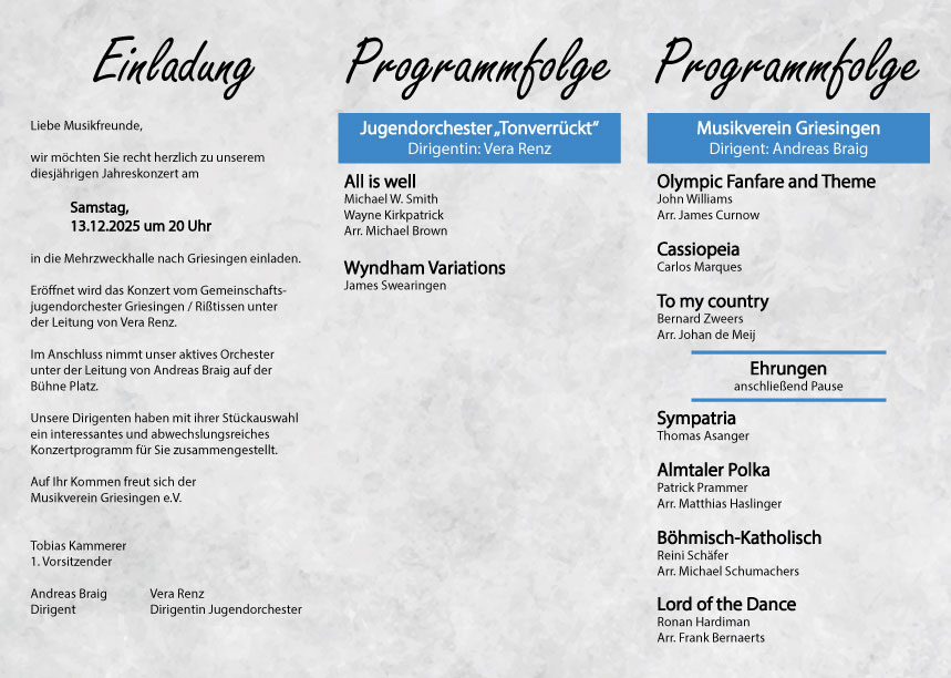 Eröffnet wird das Konzert vom Gemeinschaftsjugendorchester Griesingen / Rißtissen unter der Leitung von Vera Renz.